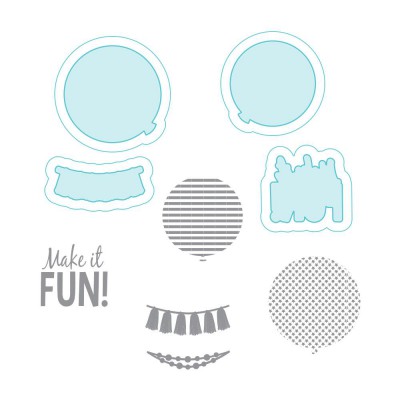 Set comprenant une planche de tampons transparents, et 4 matrices de découpe (dies) coordonnées.