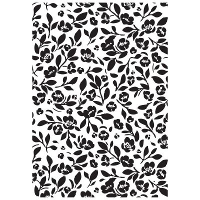 Insérez la feuille entre les 2 partie du pochoir, glissez l'ensemble dans la machine de coupe et d'embossage (Cuttlebug, Big Shot, ...), et le tour est joué !